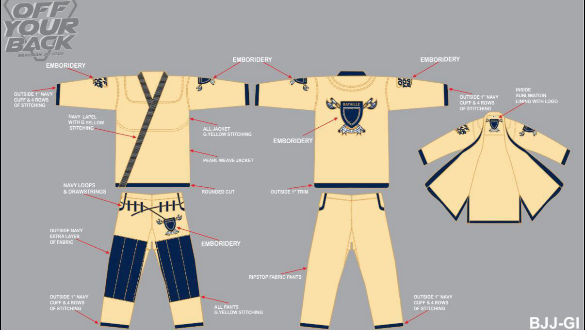 Bataille in collaboration with OYB Brazilian Jiu Jitsu, is proud to offer academy gis!